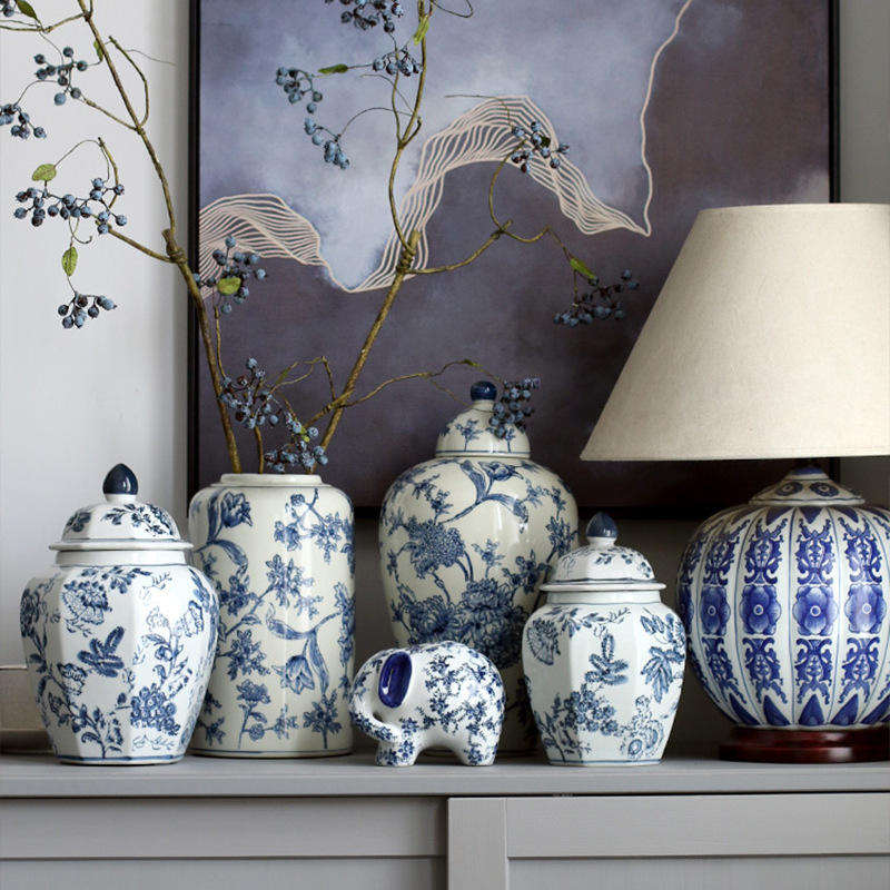 Customized Antique Blue and White Ceramic Vase Nordic Home Ceramic Ornament Flower Vase Home Decoration Ceramic Vase