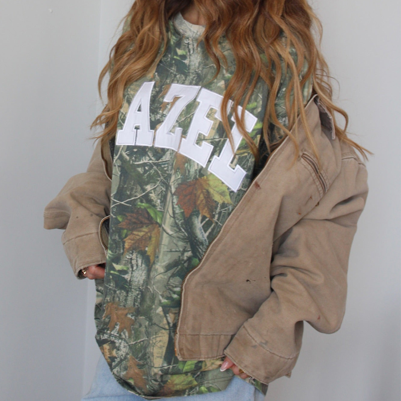 Customized Applique Embroidered Printed Crewneck Pullover Oversized Winter Real Tree Camo Cotton Sweatshirt