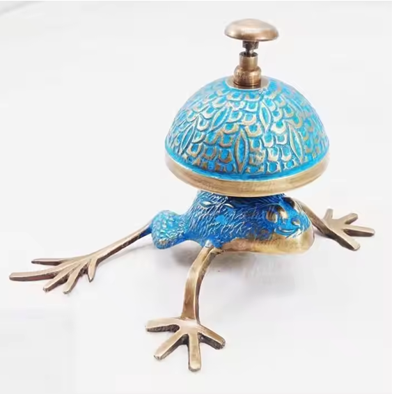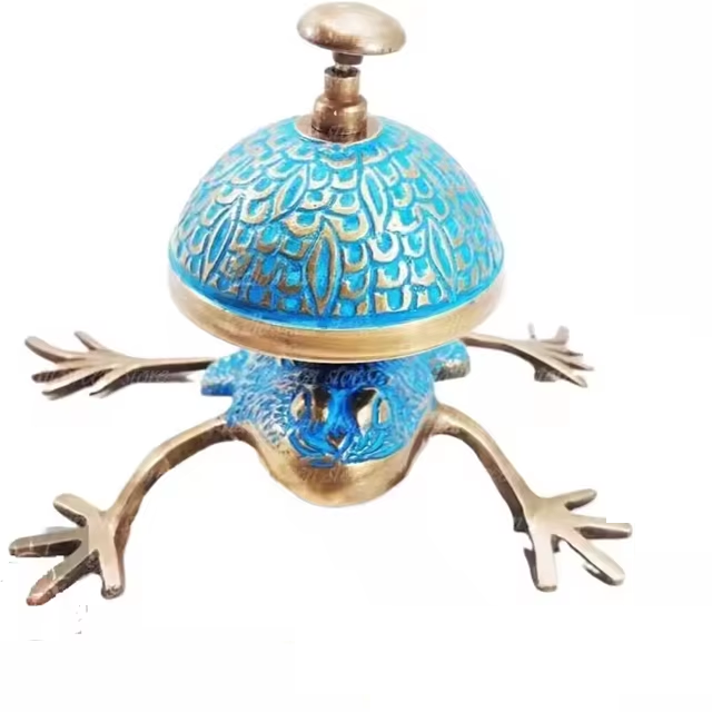 Customizable Antique Brass Desk Bell Gold Polished Finish Blue Color for Home Restaurant Tabletop Decorative Vintage Call Bell