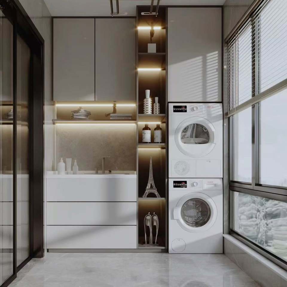 Customized Balcony Laundry Cabinet with Built in Washing Machine for Pantry Use