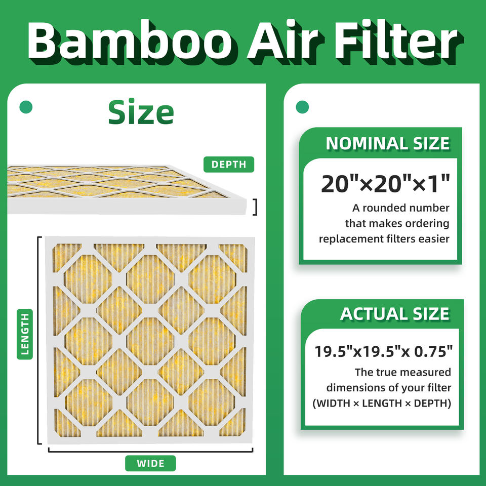 Customized Bamboo Fiber Frame High Dust Capacity Eco-Friendly HVAC Replacement Furnace Air Filter 16x25x5 MERV13 F6-H14 99.99%