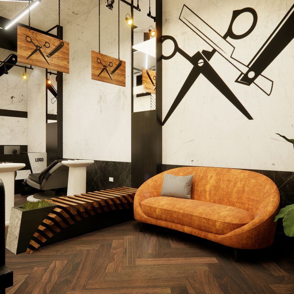 Customized Barber Shop Furniture Wooden Display Shelves Led Logo Counter Shampoo Showcase for Barber Shop Design