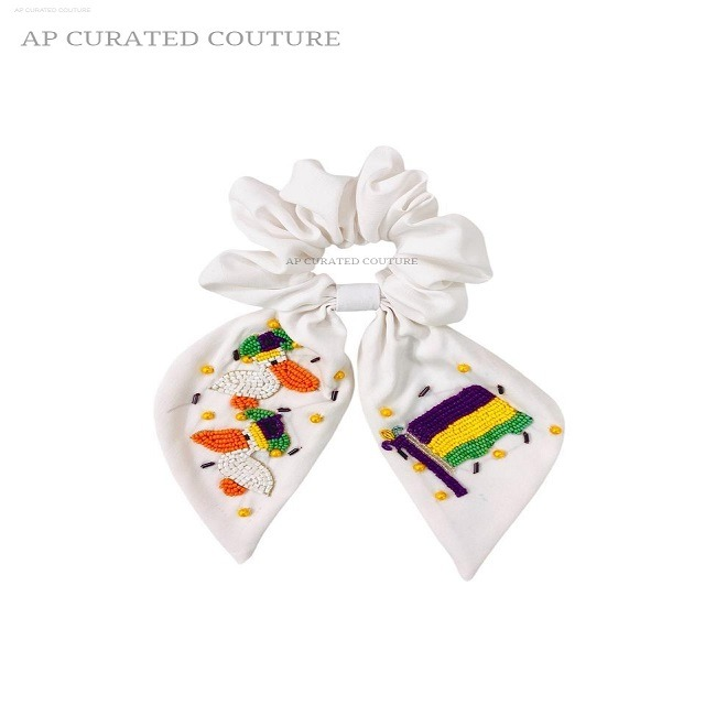 Customized Beaded Mardi Gras Hair Accessory Indian Hand Embroidered Seed Beaded Scrunchies Trending and Beautiful Design