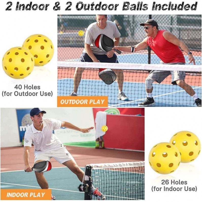Customized Beginner Sports Pickleball Racket Set 2 Paddles & 4 Balls Wood & Honeycomb Core Easy Carry for Pickleball Players