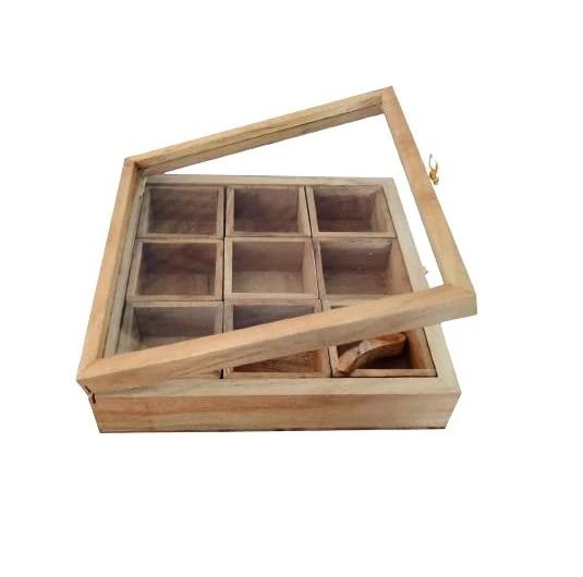 Customized Best Quality Handcrafted Natural Wooden Spice Box Spice Container for Home Home Restaurant Hotel