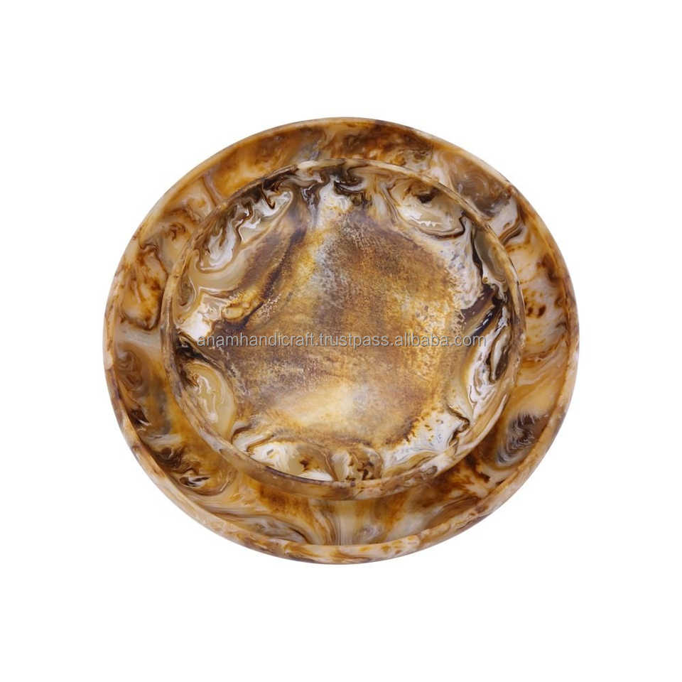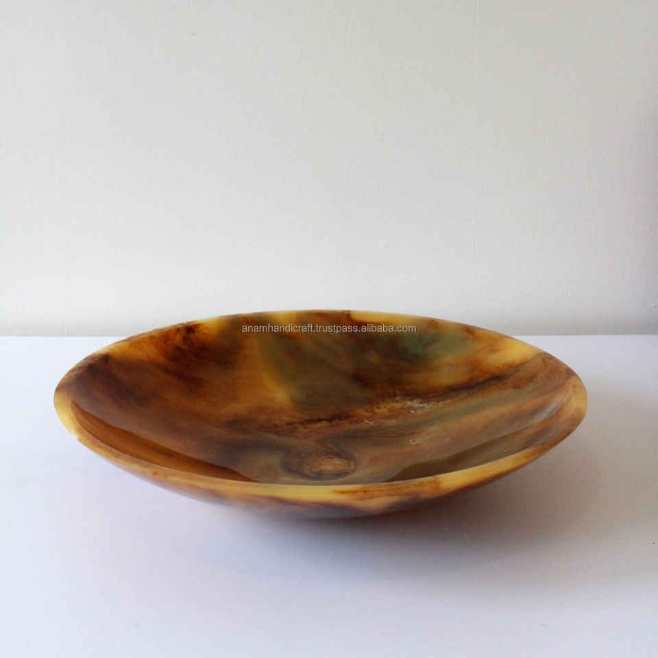Customized Bohemian Yellow Resin Serving Bowl Set High Quality Handcrafted Carved Highly Polished Packaged Carton for Home Hotel