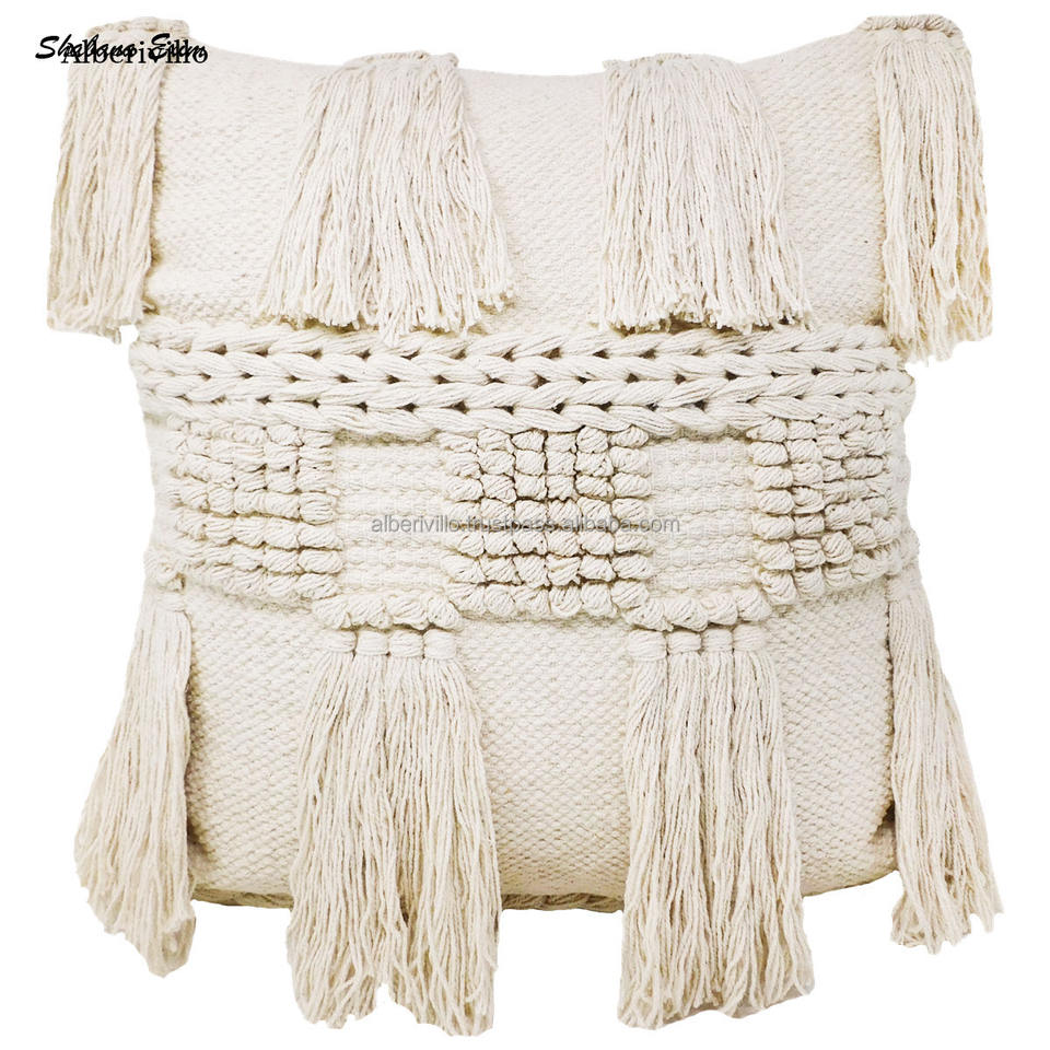 Customized Boho Chic Cotton Sofa Cushion Covers Soft Hand Woven Modern Geometric Vintage Washable Home Decor Rope Pillow Cover