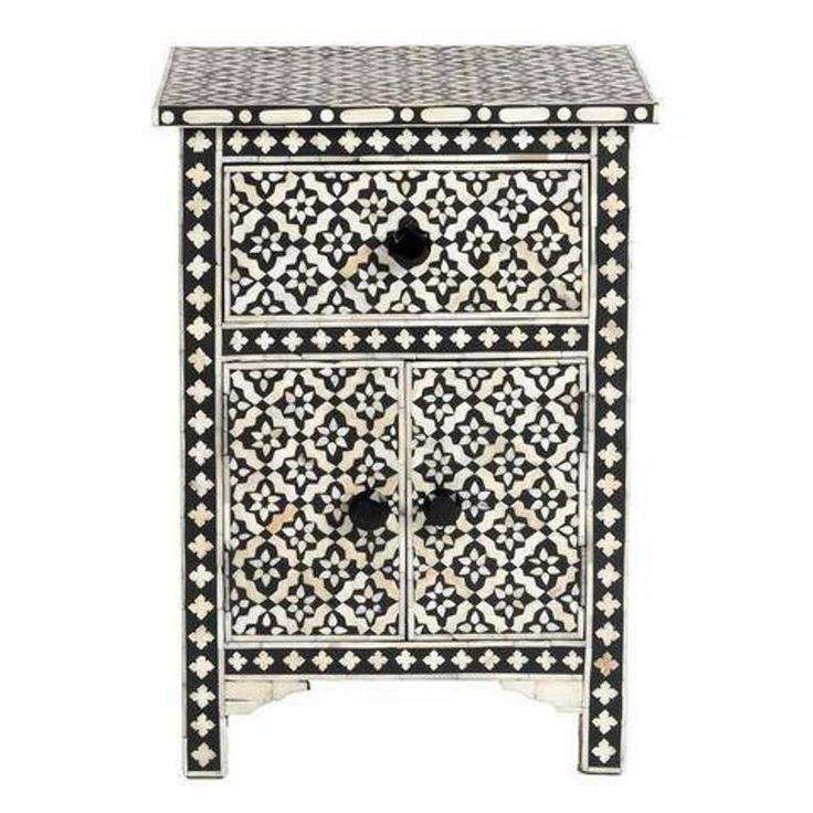 Customized Bone Inlay Finishing Bedside Table Hand Crafted Designer Corner Table Homemade Decorative Furniture Item For Home Use