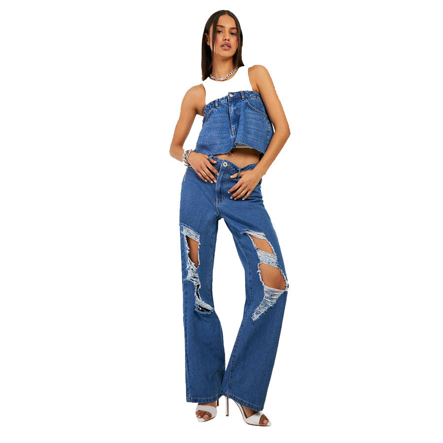 Customized Breathable Denim Skinny Jeans for Women Spring Fashion Comfort Casual Ripped Trouser