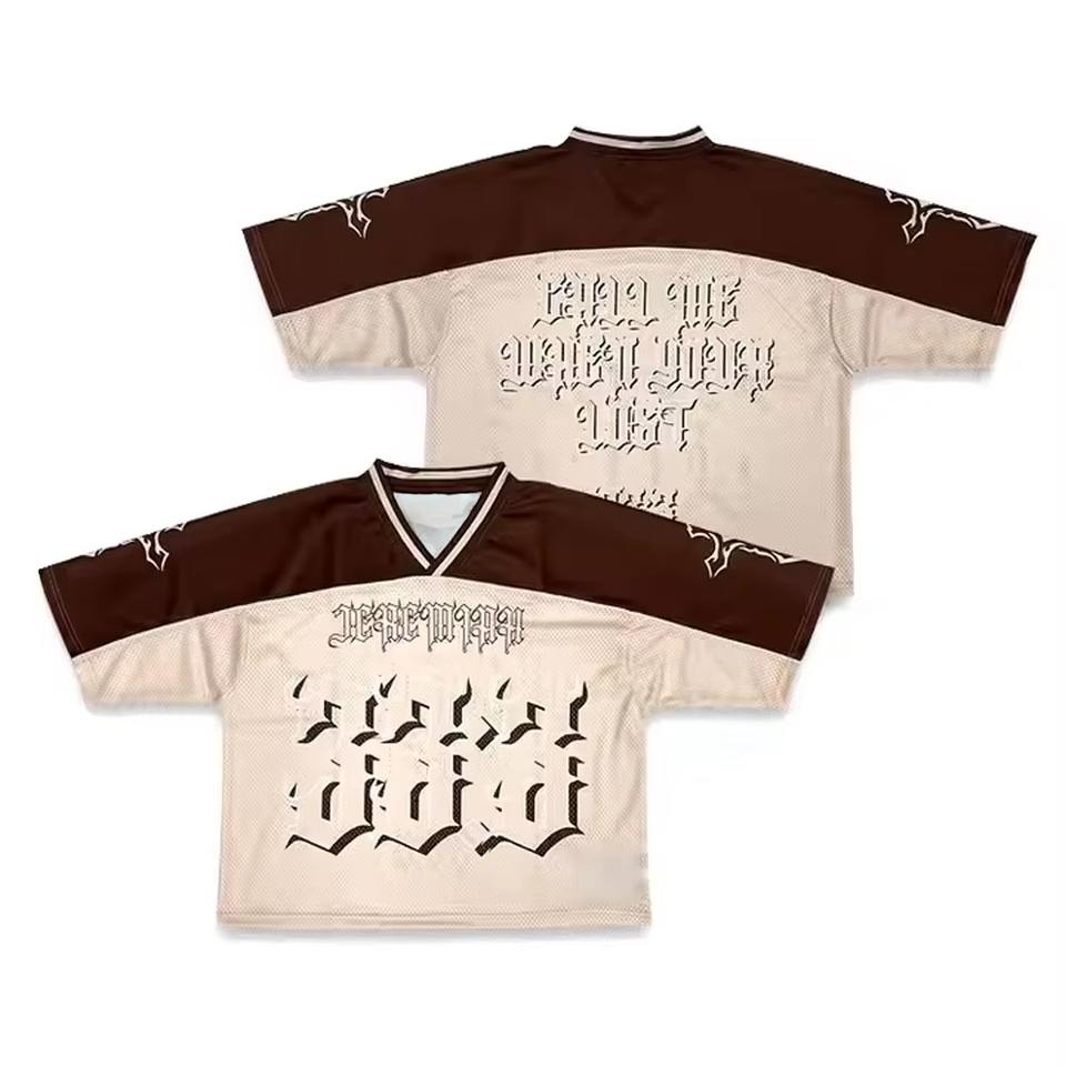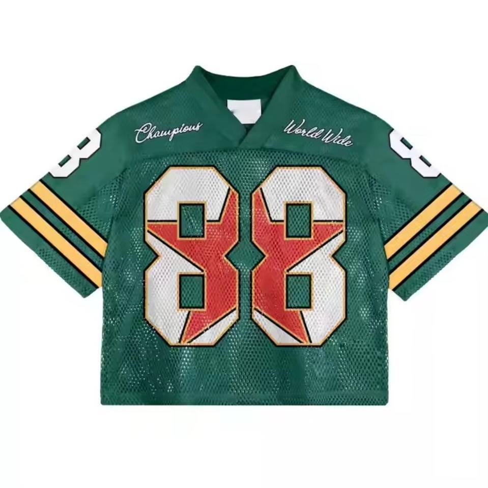 Customized Breathable Mesh 100% Polyester V-neck Plus Size Short Sleeve Training Lacrosse Green American Football Shirt