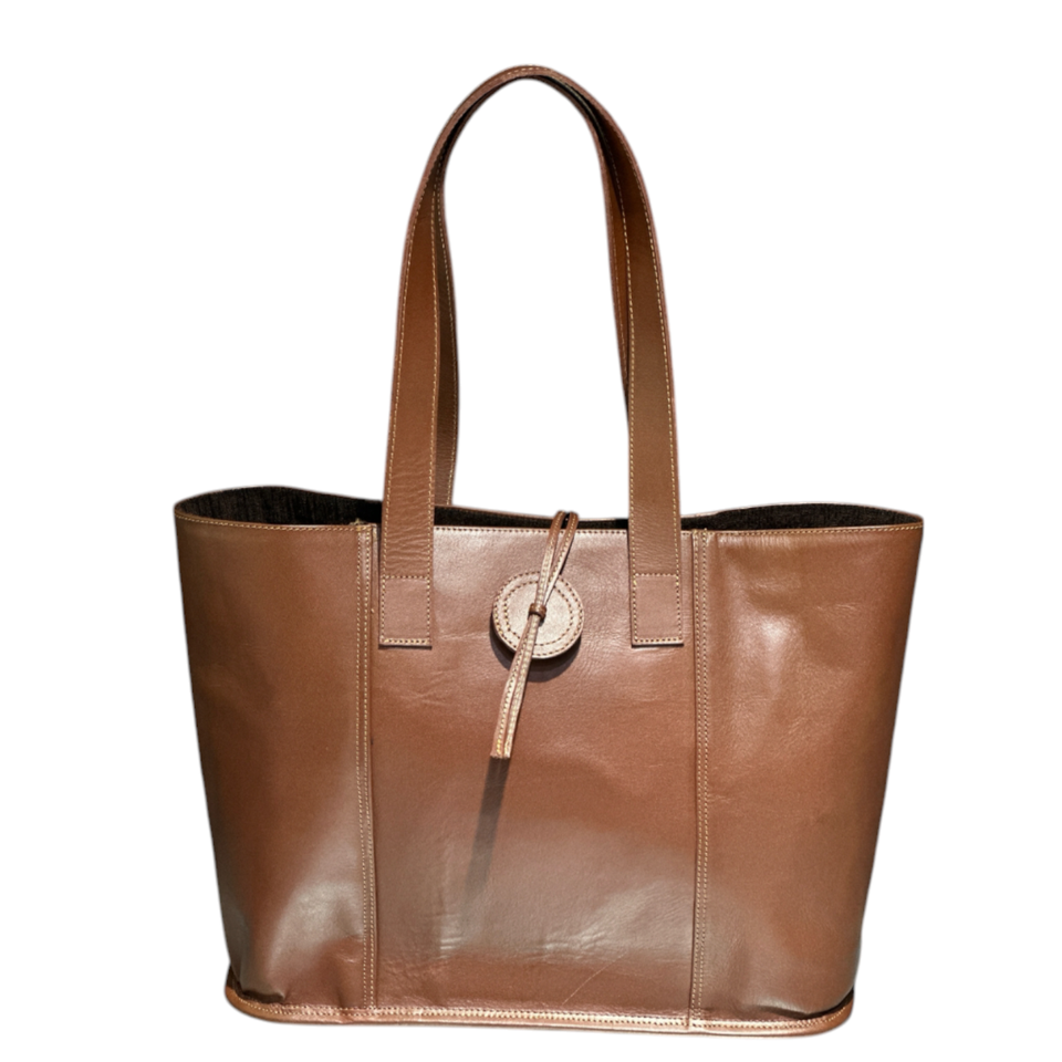 Customized Brown Calfskin Leather Handbag Velvet Lining Two Straps Large Capacity Lightweight Durable Hardware Rust Free Fitting
