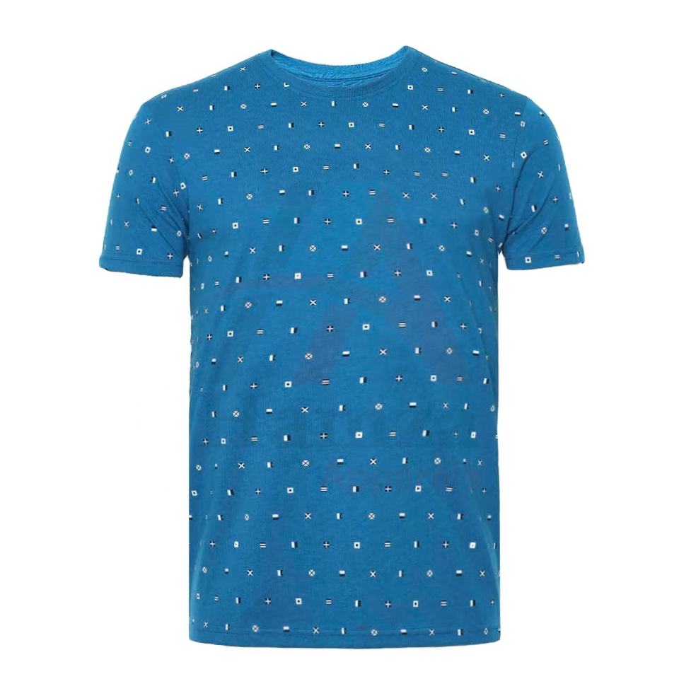 Customized Casual Short Sleeve T-Shirt, Bright Blue with Stylish Geometric Print Crew Neck Design Cotton Material Men's T-Shirts