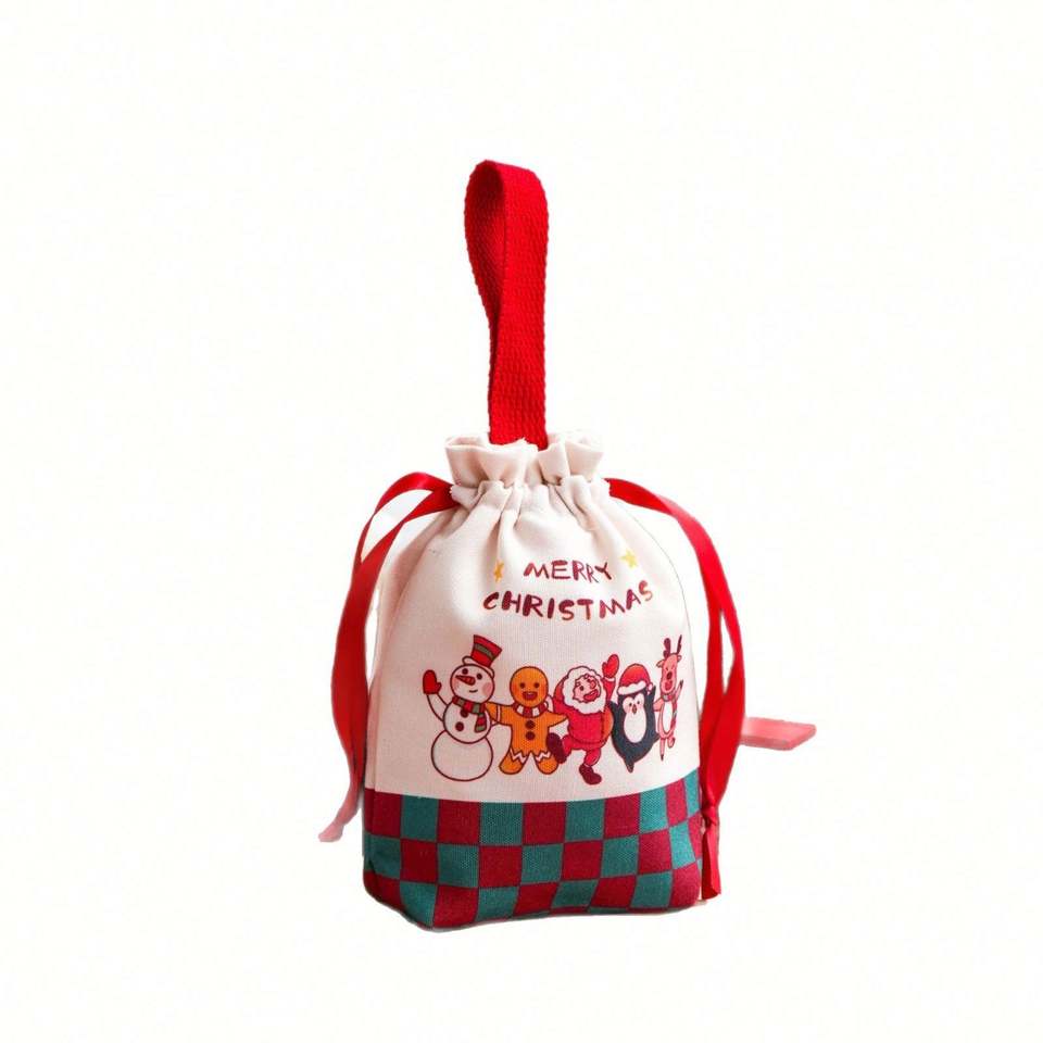 Customized Christmas Canvas Drawstring Storage Bags Handheld Feature for Festival Decoration Business Gift Packaging Featuring