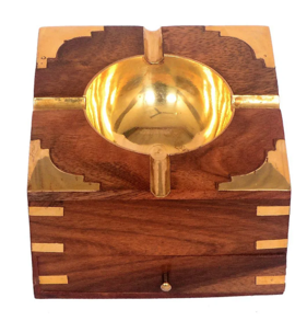 Customized Classic Sheesham Wood Ashtray Brass Elephant Inlay Design Portable Home Office Lounge Use Handmade India UNICORN