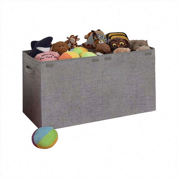 Customized Collapsible Sturdy Large Grey Fabric Toy Chest Storage Box Bins for Children