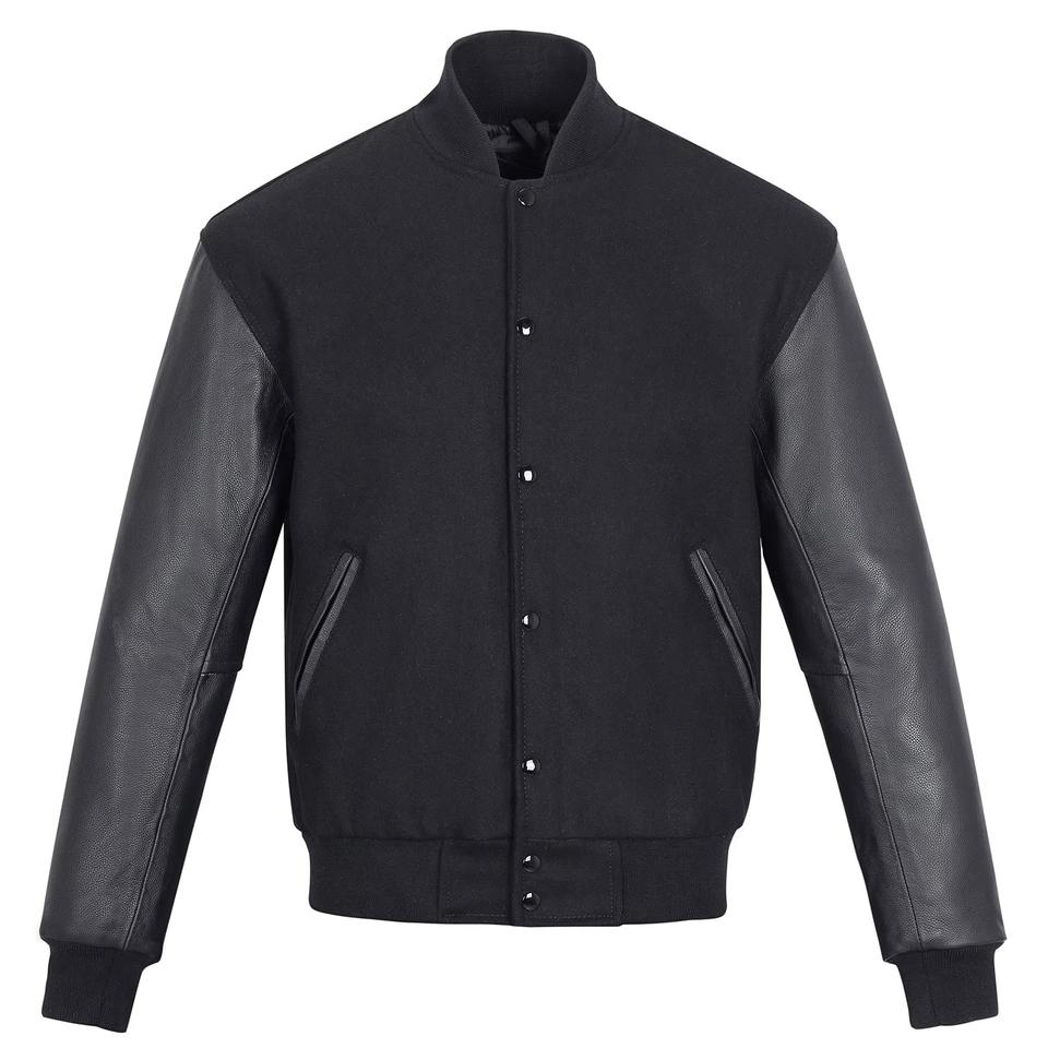 Customized Collarless Baseball Bomber Jacket High School Letterman Street Wear Leather Sleeves Varsity winter jacket For Man