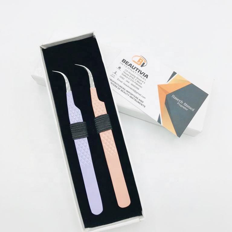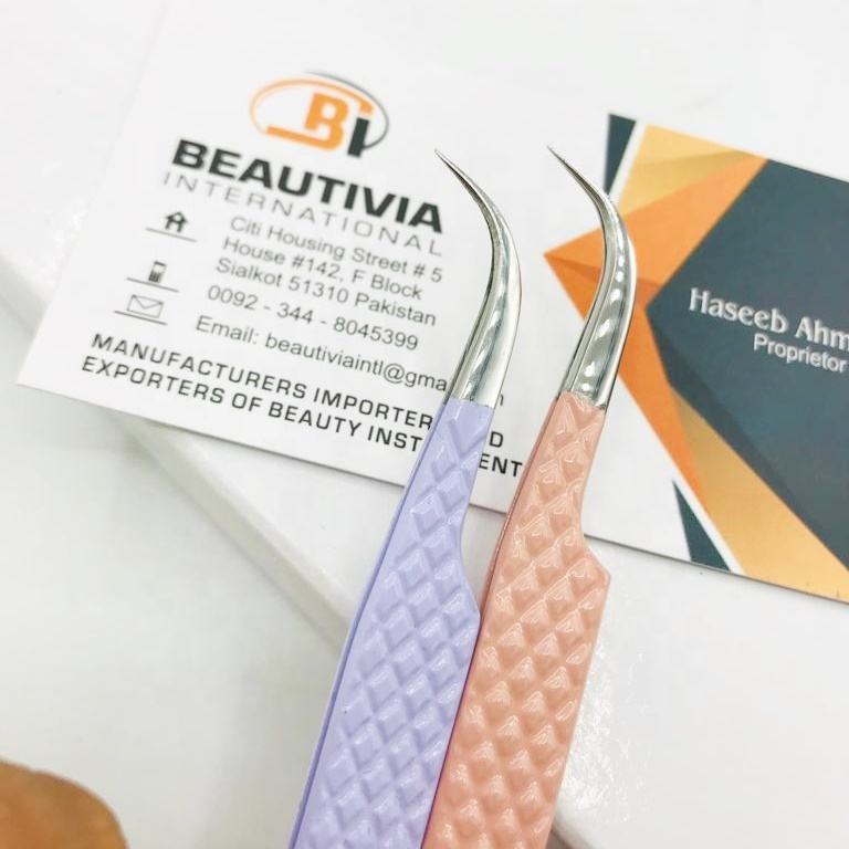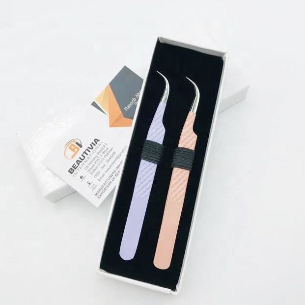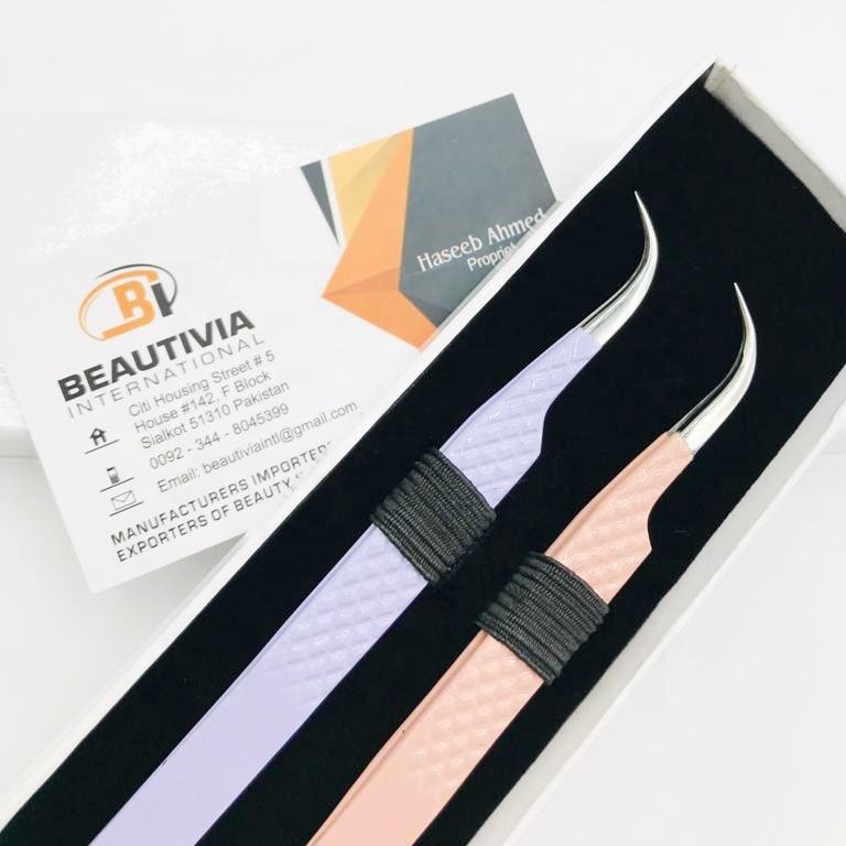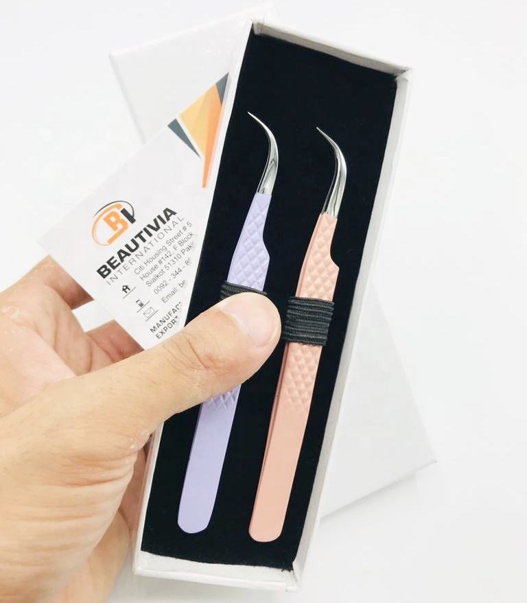 High Quality Professional Customized Color Sustainable Stainless Steel Curved Eyelash Extension Tweezers Smooth Tip Private