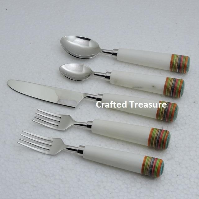 Customized Color Resin Handle Silver Plated Stainless Steel Flatware Set Tabletop Cutlery Set Kitchen Accessories Metal Material