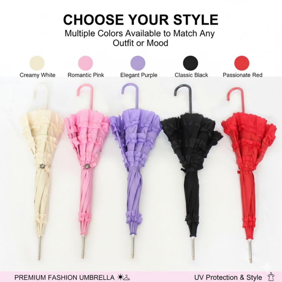 Customized Color Three-Fold Ruffle Bridal Umbrella Long Handle Lace Sunshade Elegant Manual Business Gifts Advertising Novelty