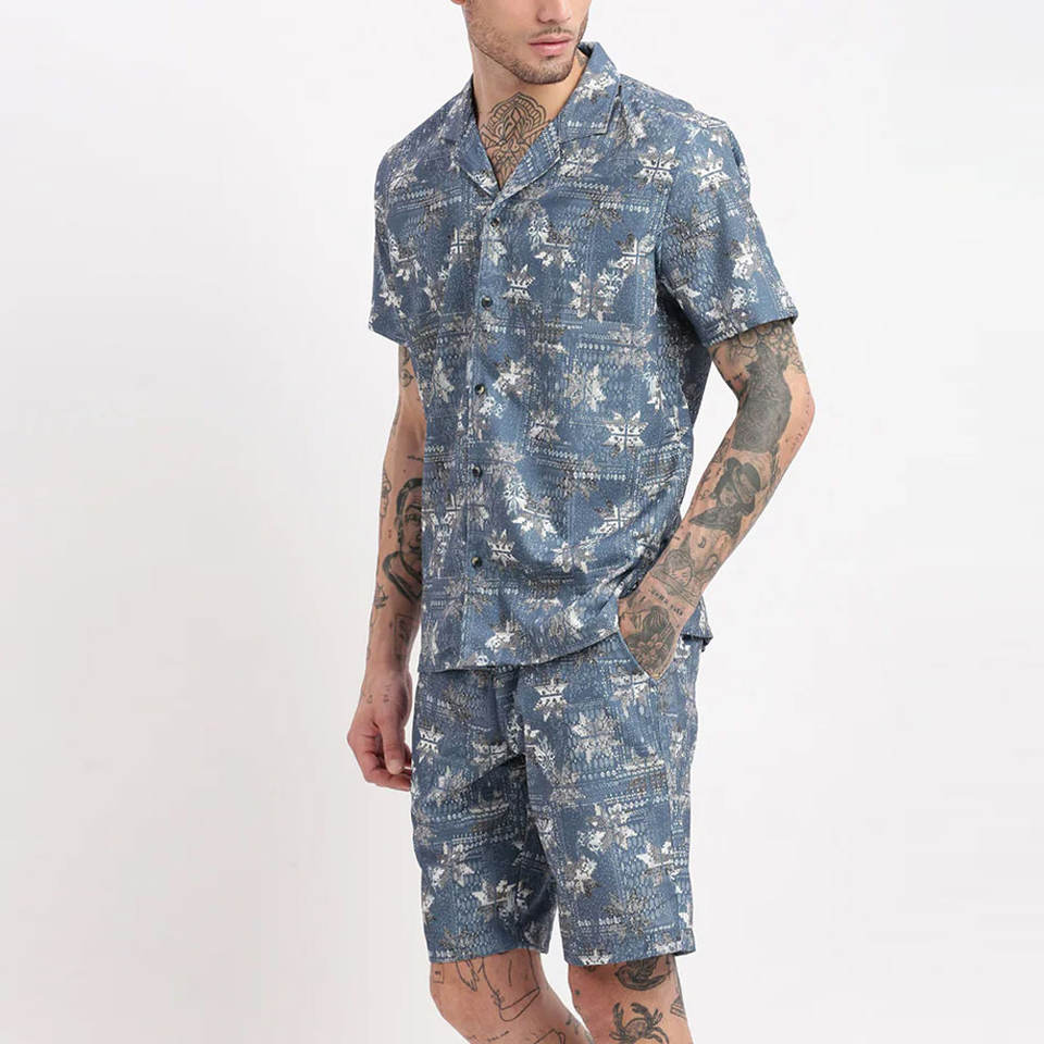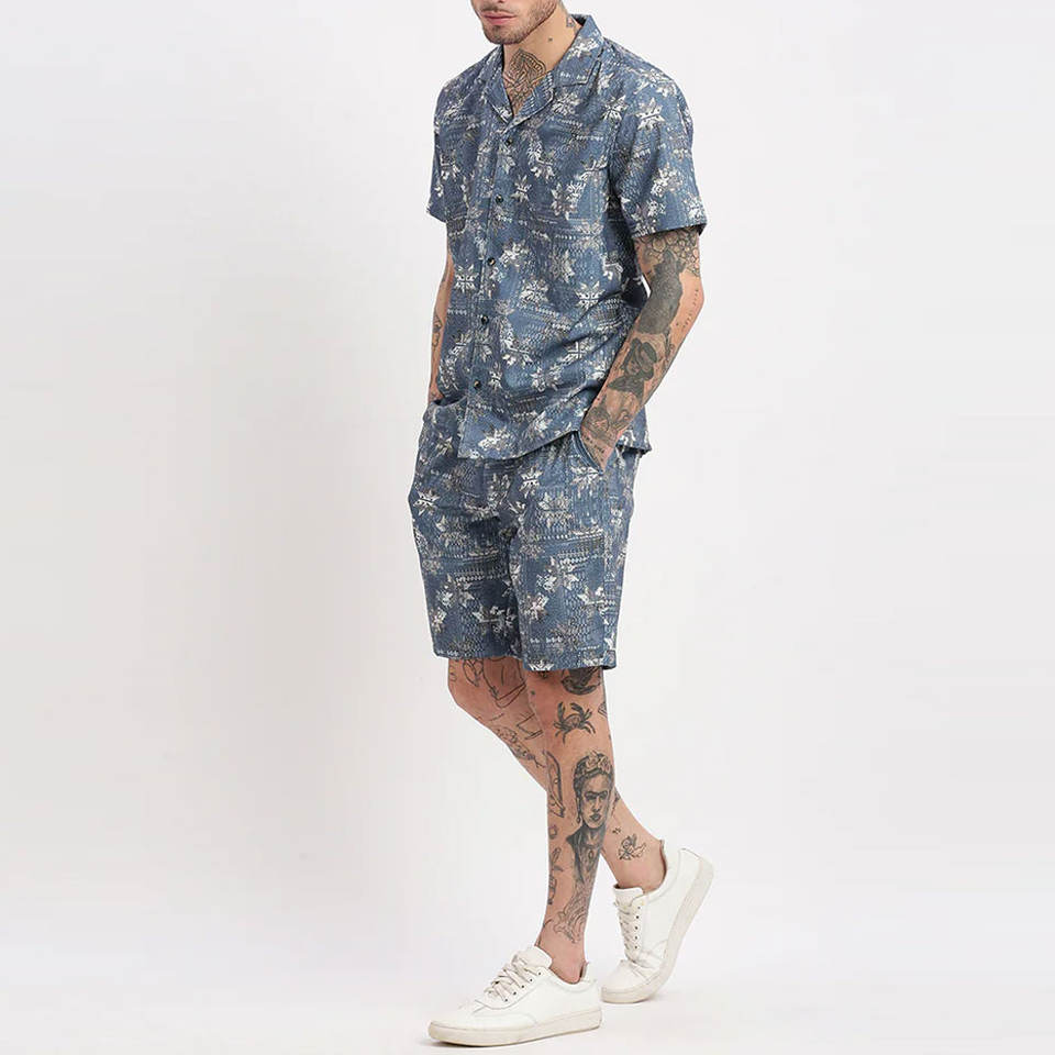 Customized Color Top Quality Unique Design Men T-Shirt & Shorts Affordable Price Stand Collar Shirt & Elastic Waist Shorts Set