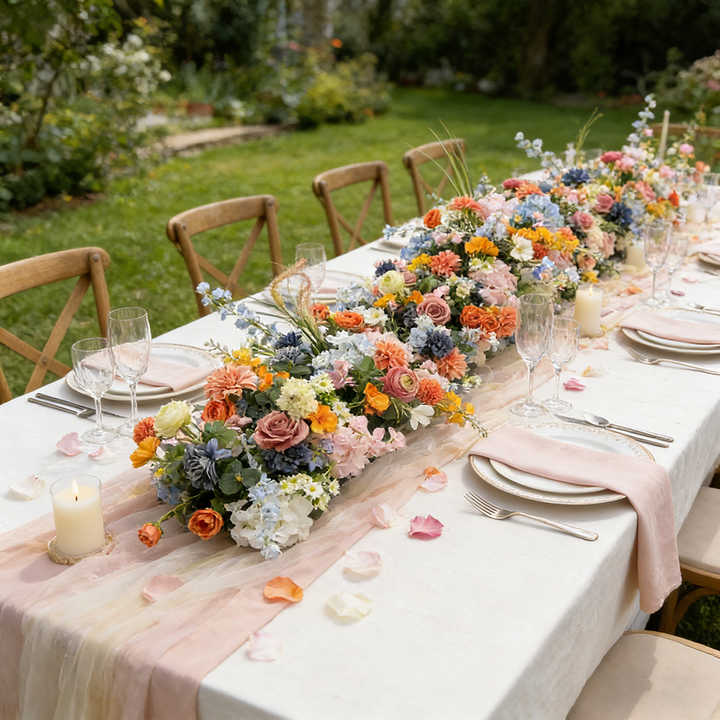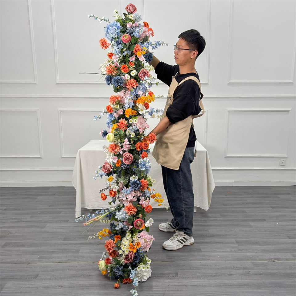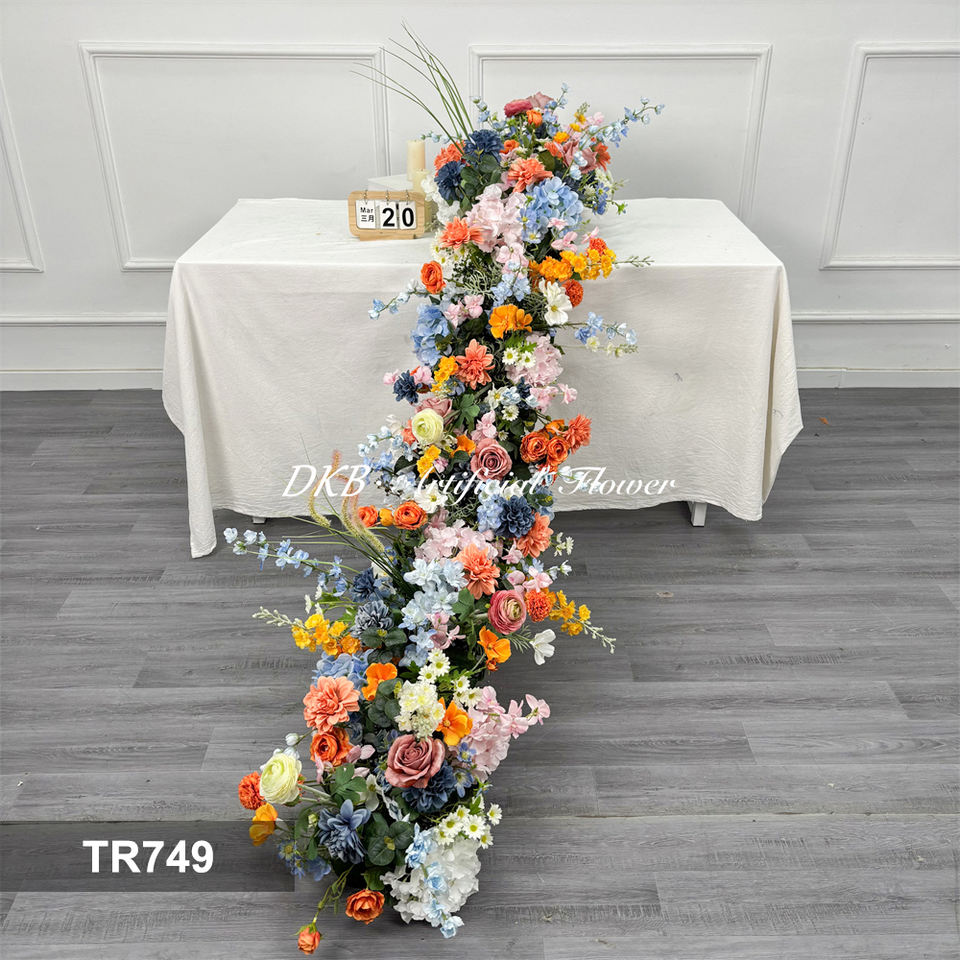 Customized Colorful Realistic Handmade Waterproof Silk Artificial Runner Flowers Wedding Table Runner Centerpieces for Home