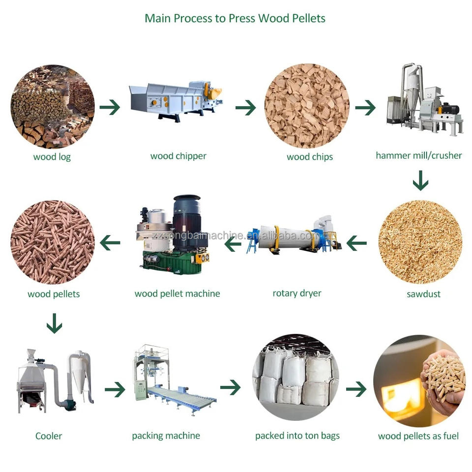 Customized Complete Wood Pellet Production Line Engine Bearing High Efficiency 100-3000kg/h Capacity 4-12mm Manufacturing Plant