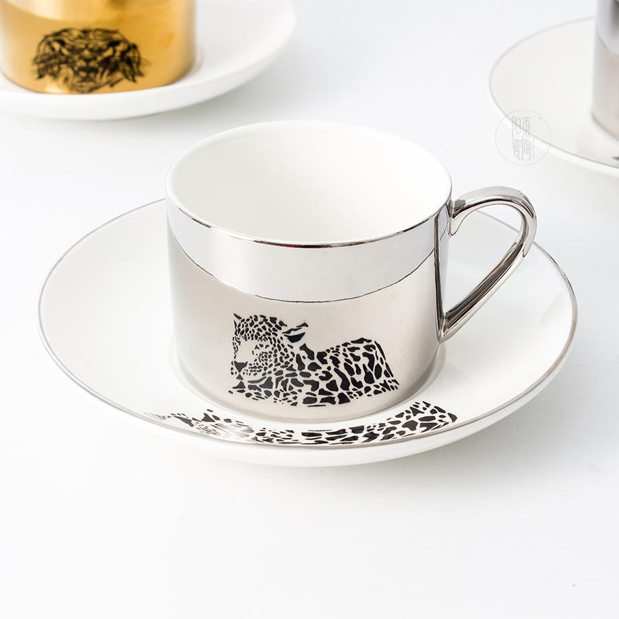Customized Creative Mirror Reflection Ceramic Coffee Cup With Saucer European Style Afternoon Tea Electroplated Set