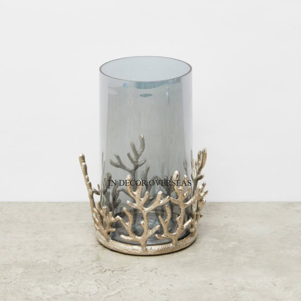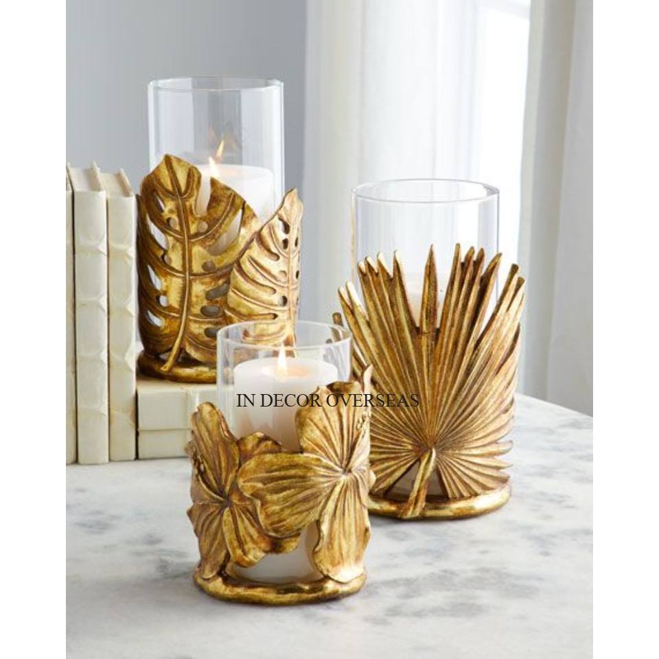 Customized Design And Size Available Gold Plated Aluminum Casted And Clear Glass Made Decorative Hurricane Candle Holder