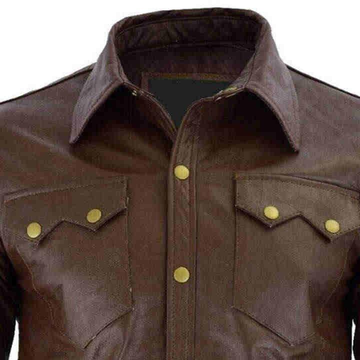 Customized Design Leather Men Shirts Casual Wear High Quality Price Man Brown Leather Shirt for Sale Easy to Wear Men Shirts