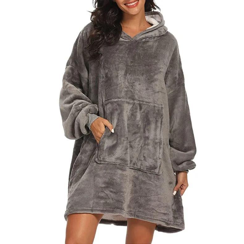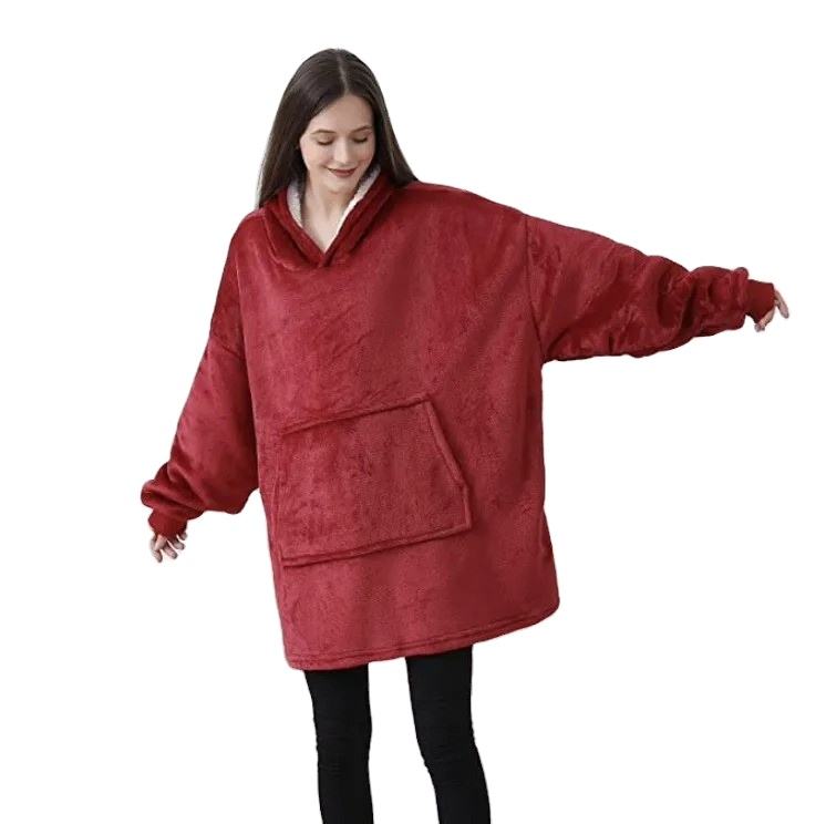 Customized Design Printed Thick Knitted Sherpa Fleece Long Cozy Warm Oversized Streetwear Winter Hoody Blanket with Custom Color