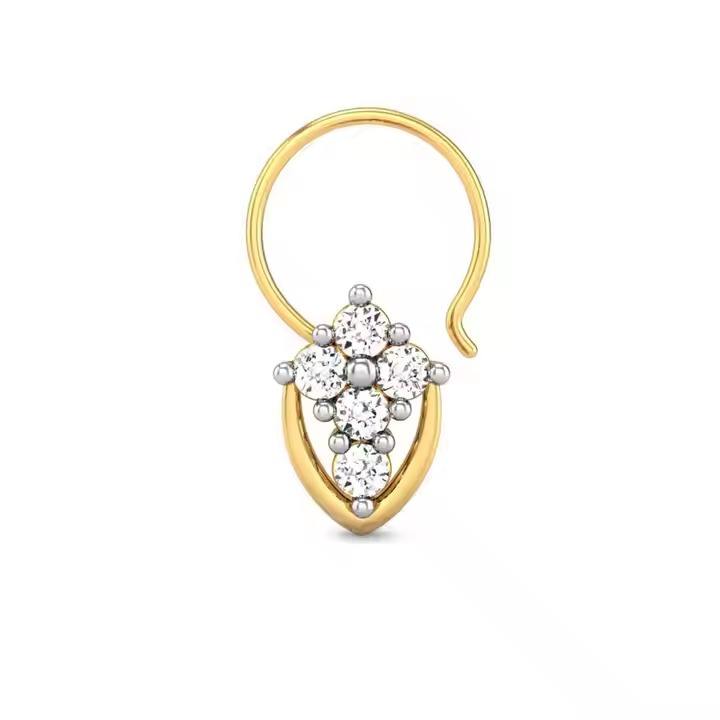 Customized Design Real Diamond Cluster Nose Pin in 14k Yellow Gold Nise Stud for Girls