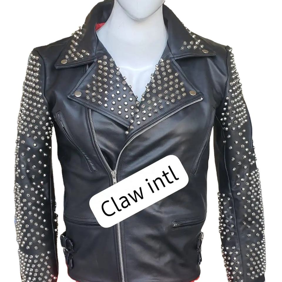 Customized Design Rivet Genuine Sheep Leather Motorcycle Jacket High Quality Men Winter Plus Size Thick Soft