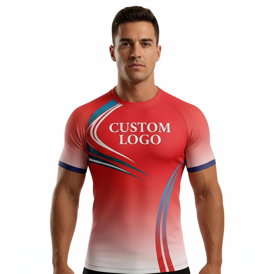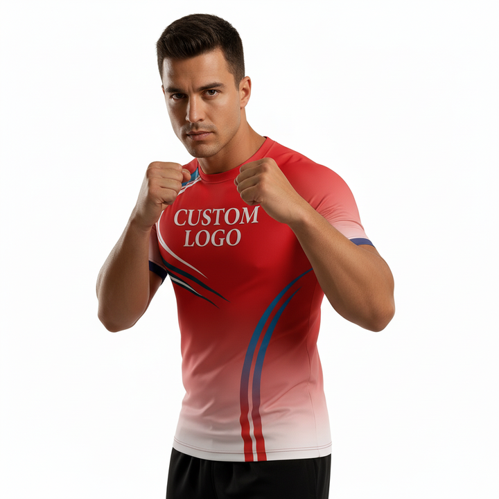 Customized Digital Printed MMA Rash Guards BJJ Surfing Rash Guard for Unisex Children Short Sleeve Quick Dry Polyester Spandex