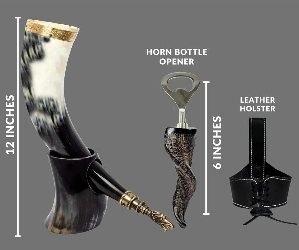 Customized Drinking Horn with Stand and Leather Case Personalized Drinking Horn Authentic Drinking Horn for Beer Mead Party