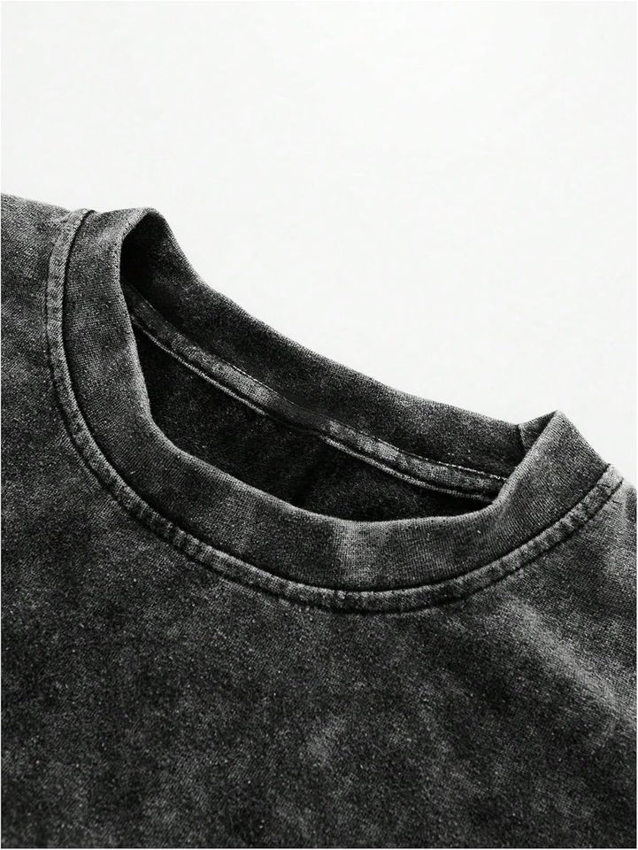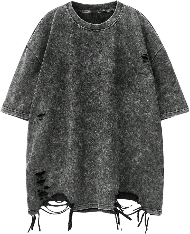 Customized Drop Shoulder O-Neck Acid Washed Distressed Heavyweight Cotton Blank Plain Oversized 100% Cotton Jersey Men's T-shirt