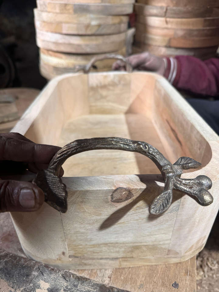 Customized Eco-Friendly Handmade Wood Serving Tray with Handles for Snacks Dishes Bulk Wholesale Craft Wooden Boxes Wall Signs