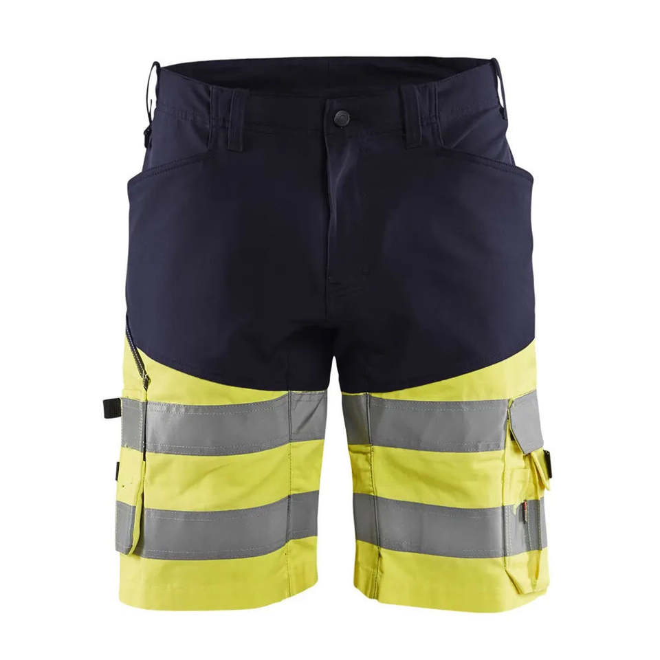 Customized Elastic Waist Canvas Working Shorts Construction Safety High Visibility Reflective Work-Wear Cargo Shorts