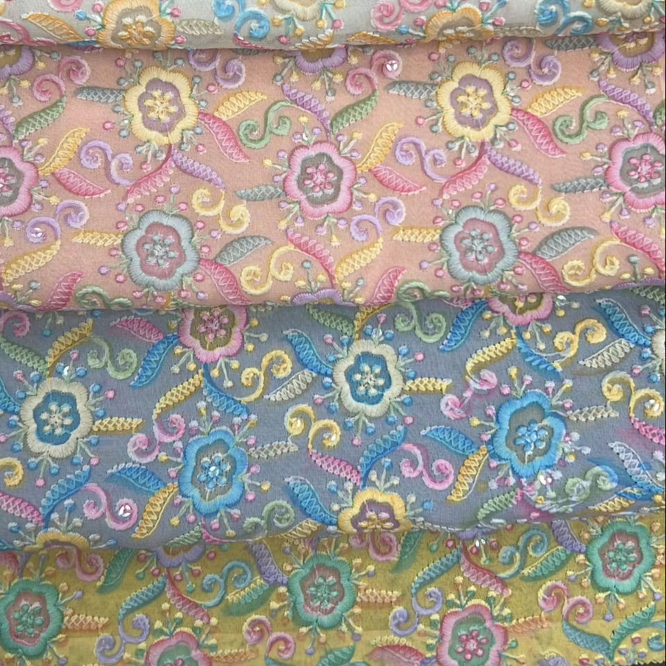 Customized Embroidery Fabric with Cotton, Polyester, or Mesh Base for Clothing Manufacturers and Designers