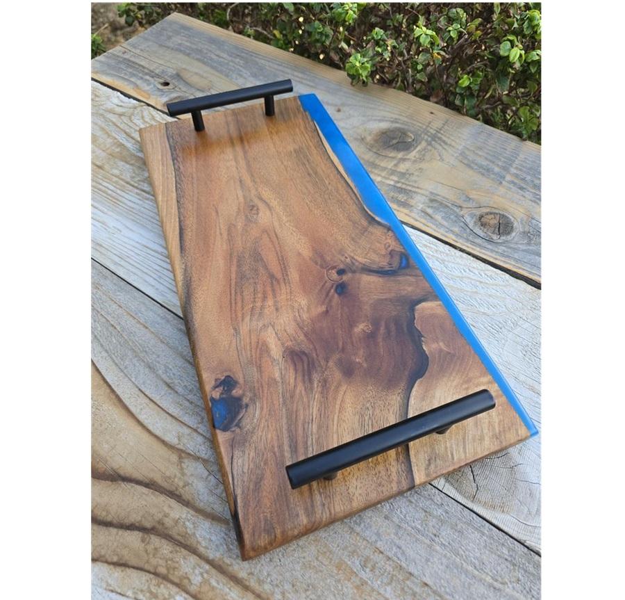 Customized Epoxy Resin Wooden Serving Tray Rectangle Tray for Home Use Decorative Food Tea Coffee Dinnerware Serving Tray