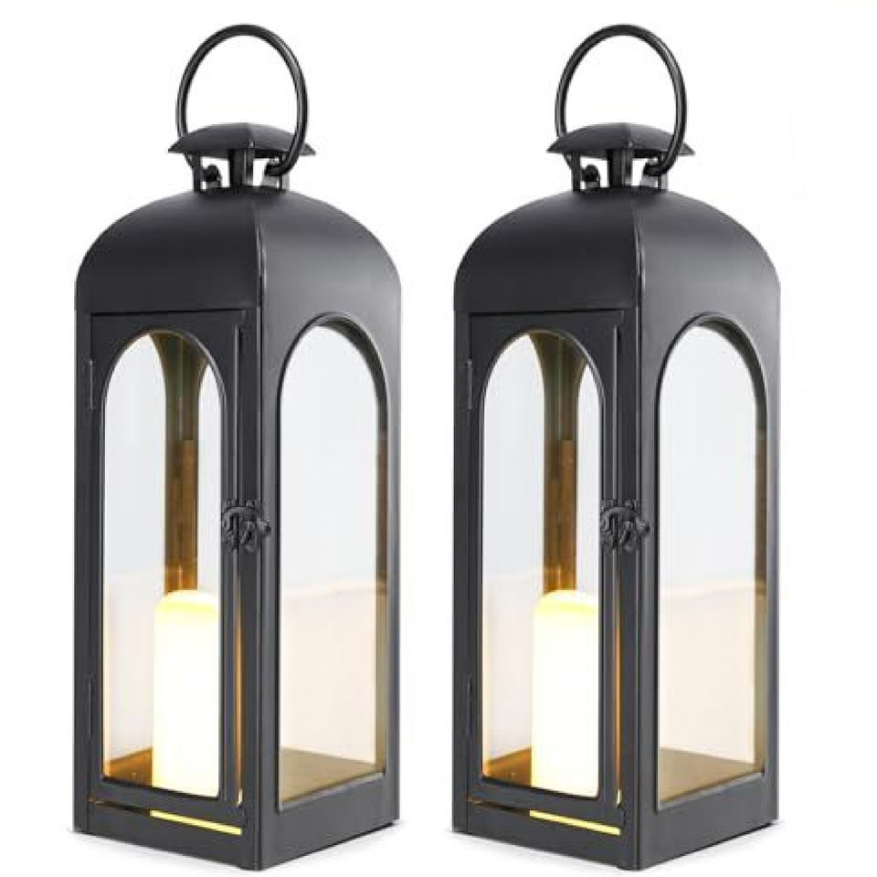 Customized Factory Bulk Selling Set of 2 Pcs Metal & Glass Lantern With Black Finish Lantern for Hotels & Home Decor Handmade