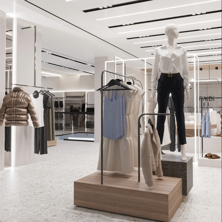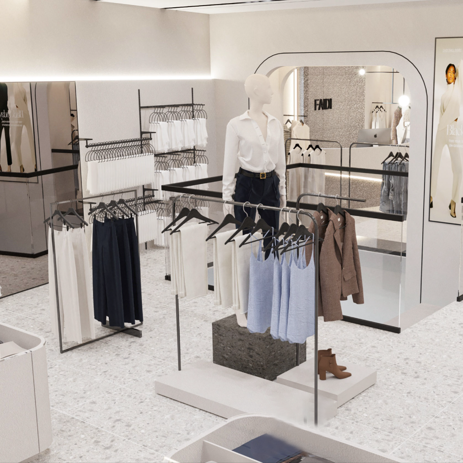 Customized Fashion Clothes Store Interior Design Women's Bag Shoes Furniture Decoration Solution Garment Store Display Rack
