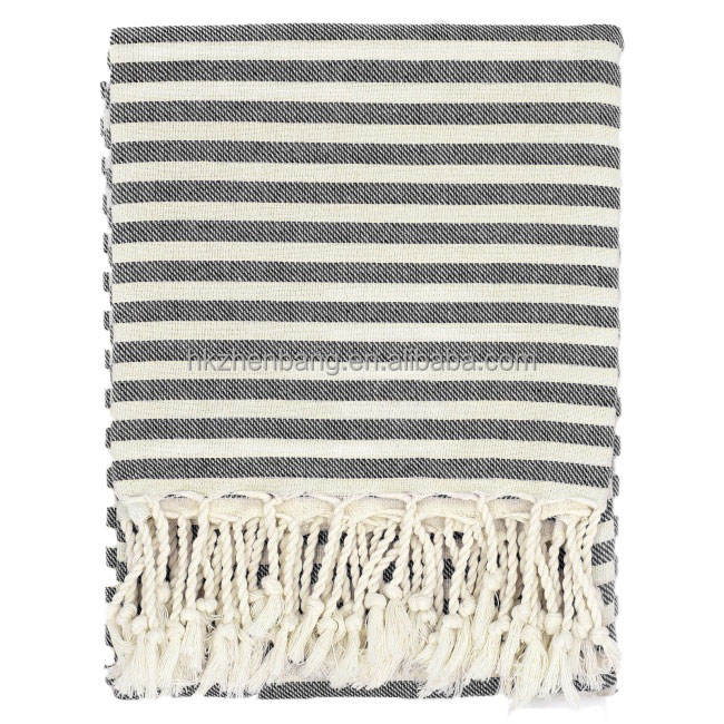 Customized Fast Drying Cotton Turkey Towel Turkish Stripe Beach Towel Bulk with Tote Bag
