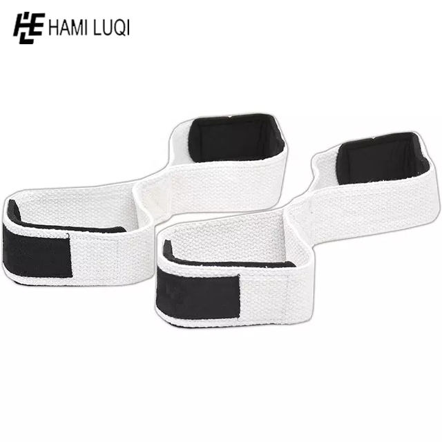 Customized Fitness Accessories Wrist Straps Weight Lifting Gym Support Hand Bar Grips Figure 8 Design Custom Cotton Rubber Nylon