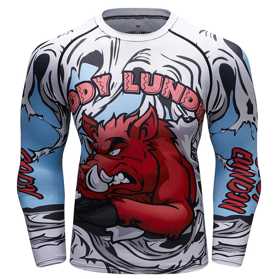 OEm Customized Fitness Compression Shirts Adults UPF50 Breathable Polyester/Spandex Rash Guards Fitness Wear MMA Rash Guard Hot