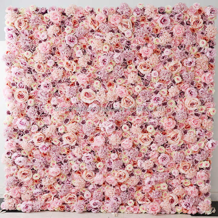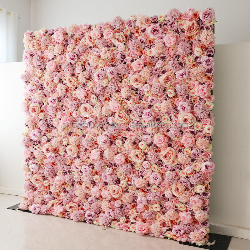 Customized Flower Arrangement Pink Flower Wall Panel Artificial Floral Rose Wall Backdrop Roll up Curtain Flower Wall