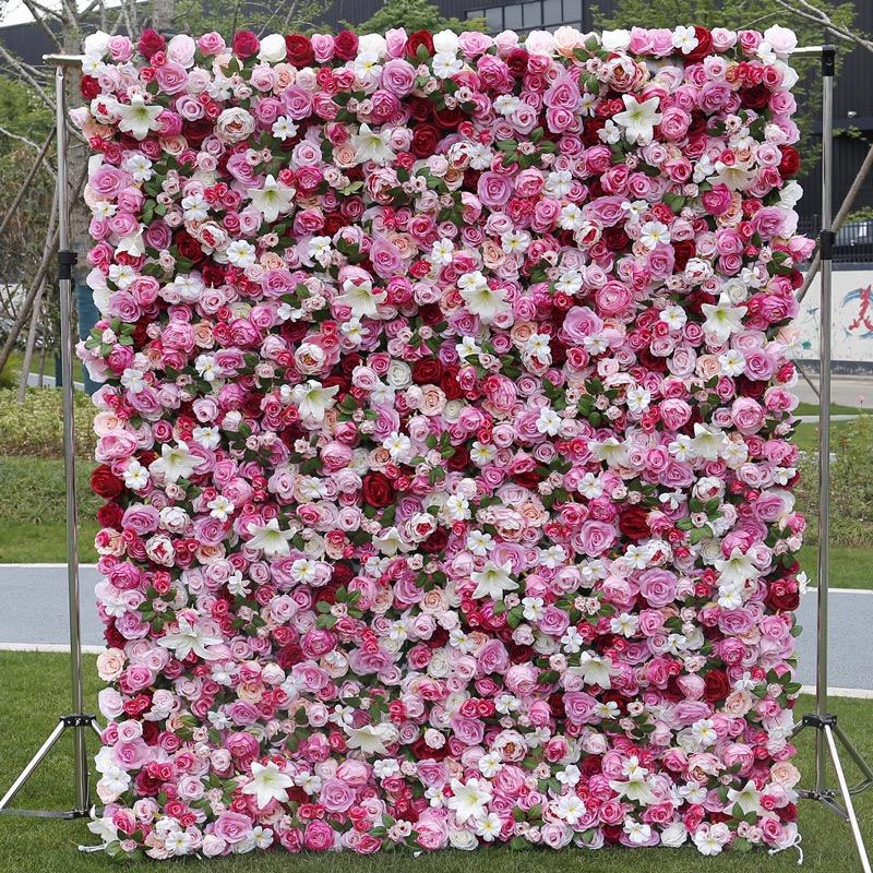 Customized Flower Wall Panel Backdrop 3D Silk Multicolor Rose Floral Wall Artificial Flower Wall for Wedding Party Decor