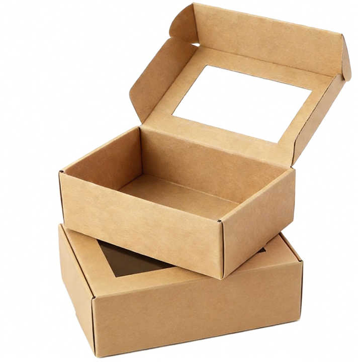 Customized Folding Window Design Square Corrugated Paperboard Boxes Kraft Gift Packaging Boxes