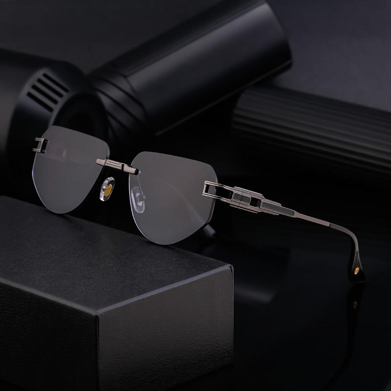 Customized Frameless Sunglasses For Men UV400 PC Lens Black Instagram Style Outdoor Fashion Taizhou Origin Box Packing WF 5G59