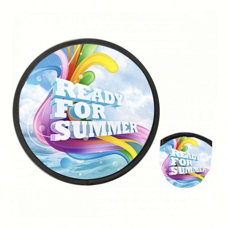Customized Full Color Diy Printed Pop up Round Hand Fan Flexible Foldable Nylon Flying Disc Fans Pouch with Logo