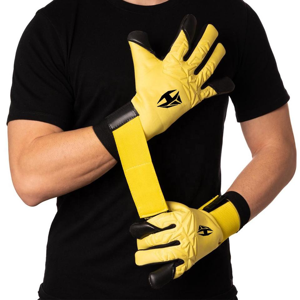 Customized Goalkeeper Gloves Front Palm4mm German Latex Backhand Rubber Inject Finger And Thumb Wraps Removable Strap